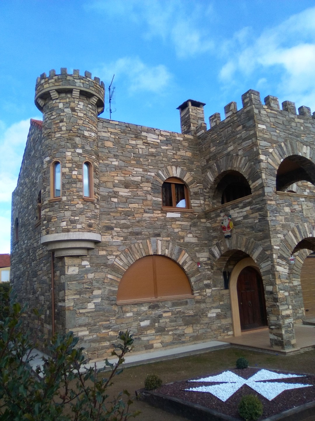 Chalet-Vivienda de Hospital de Orbigo, realizada en Variedad PIRENAICA. Es de resaltar el color oscuro de esa variedad. Destacar la buena colocación de la piedra, en especial de los arcos, esquinas y huecos.